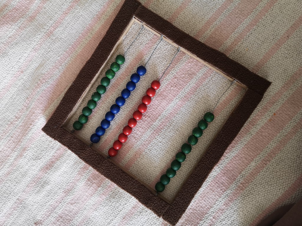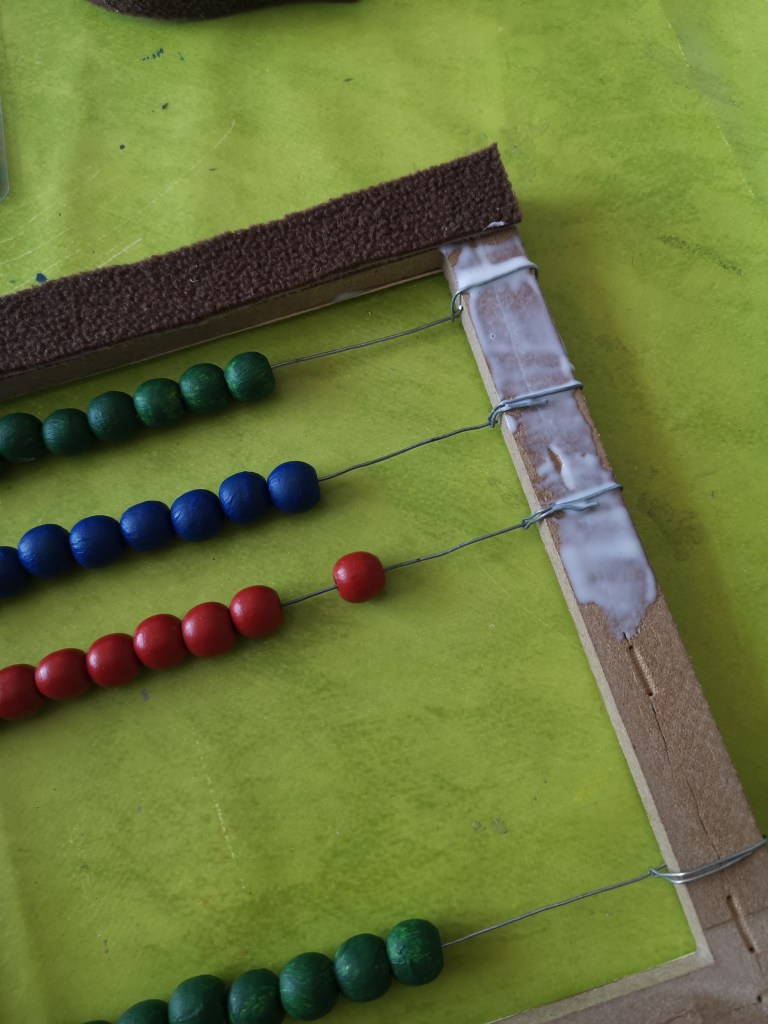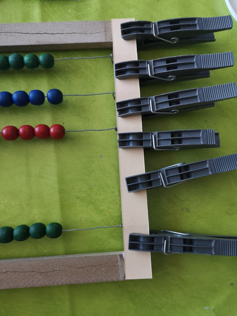J’ai placé devant du papier cartonné pour cacher le fil mais surtout pour pouvoir noter les nombres dessus.