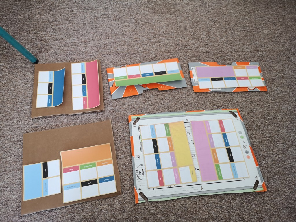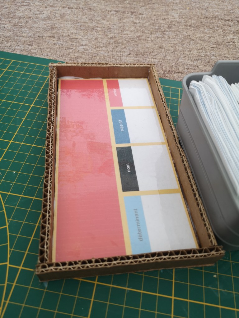 La seule chose c’est que j’ai mis les mots dans les boîtes directement dédiées à chaque nature de mot.