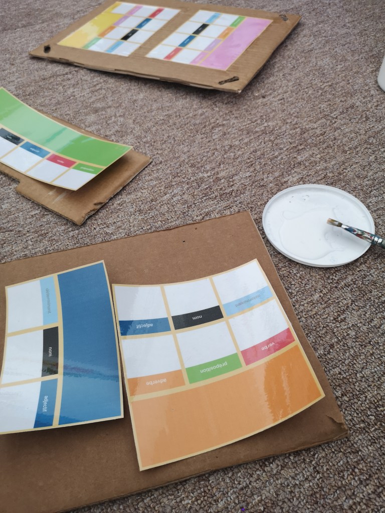 Pour les faire j’ai utilisé du carton, il faudra également de la bonne colle et de quoi plastifier.
