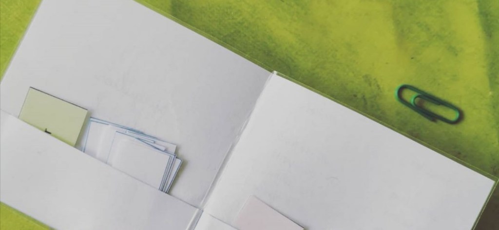 Ta pochette avant de la plastifier tu plie le bas, donc faut qu’elle soit un peu longue. Une fois pliée tu la plastifies et tu vas découper doucement juste au dessus du rabat que tu as plier. Comme il n’y a pas de colle ça va faire une fente. Je sais pas si c’est plus clair. C’est un peu comme l’astuce de plastifier 1 seulz face