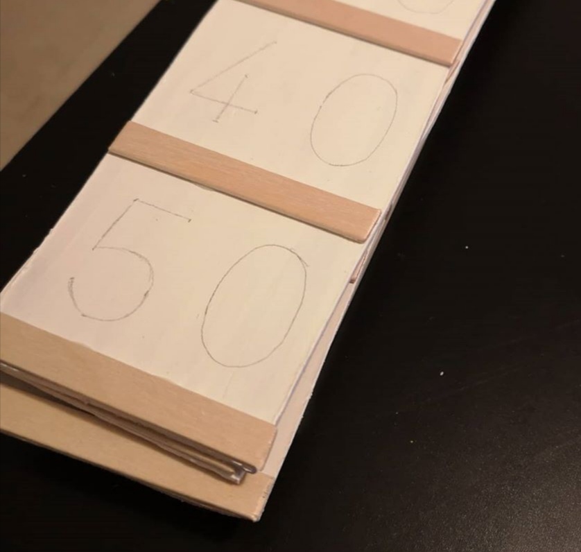 Il suffit ensuite d’écrire et de peindre les nombres dessus. J’ai utilisé des gabarits (dans le ficher plus bas) pour que ça soit le plus propre possible.