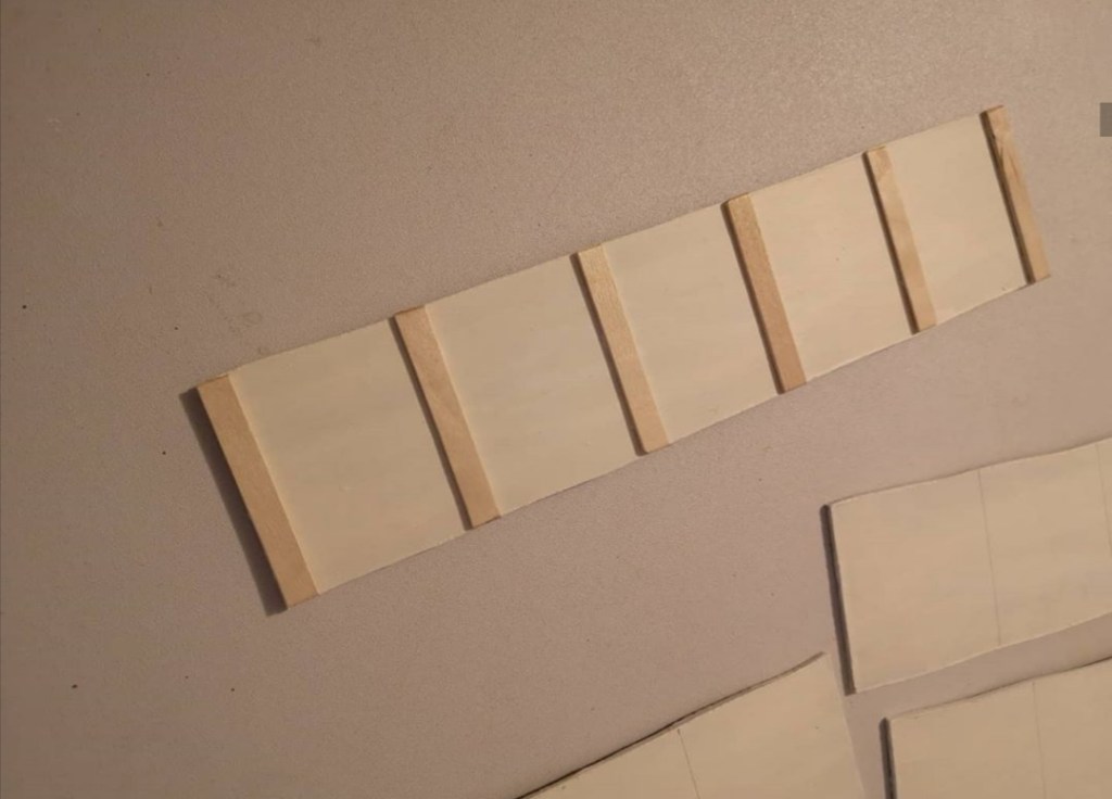 Découper 4 rectangles de 6.5cm sur 30cm, poncer les côtés et les peindre si nécessaire.