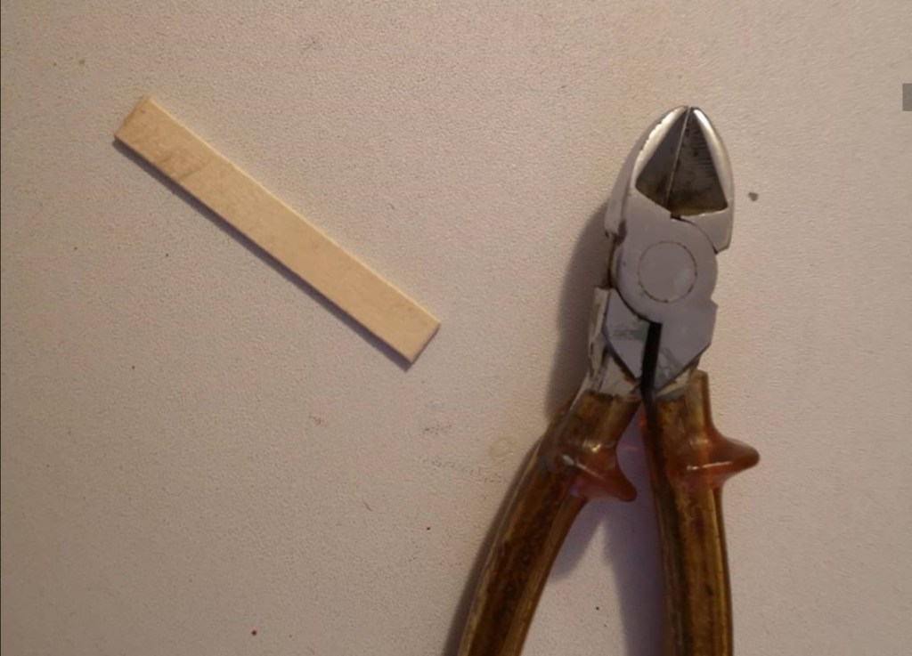 Découper des abaisses-langues pour qu’ils mesurent 6.5cm de long, poncer aussi les extrémités.