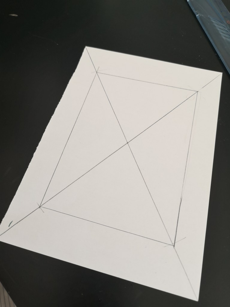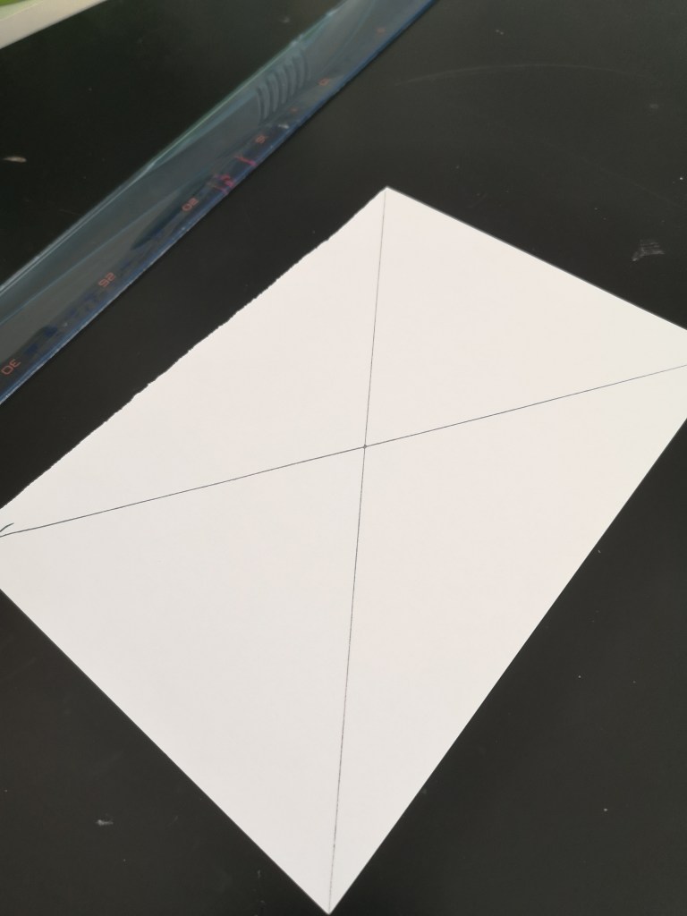 Pour cela, il a pris une feuille (rectangle), et a tracé 2 droites qui partent des coins de ce rectangle, ce sont les diagonales et elles se croisent en un point.