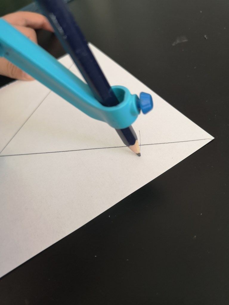 Avec un compas, il a fait un repère sur les droites aux 4 coins de la feuille.